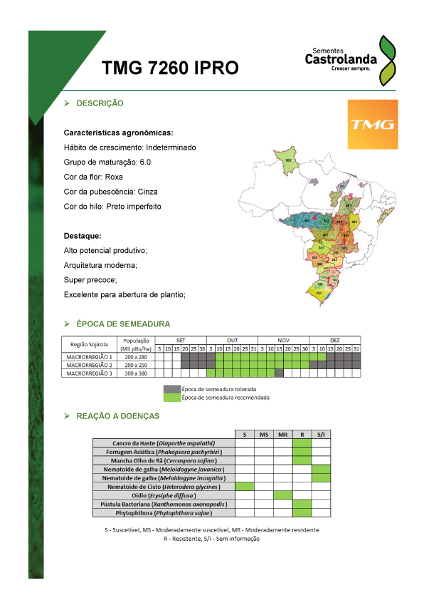 Alto potencial produtivo Arquitetura moderna Super precoce Excelente para abertura de plantio
